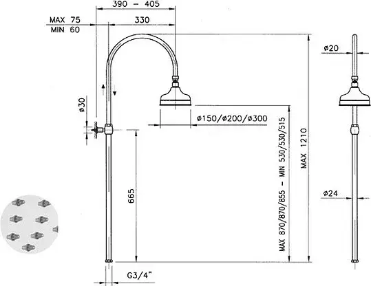 Nicolazzi Doccia Душевая стойка с верхним душем, диаметр 20 см, цвет: золото 5712WSGB20