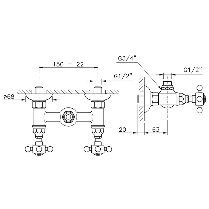 Nicolazzi Half Dome Crystal Смеситель для ванны с душем настенный на 2 отв., цвет хром 1401CR93