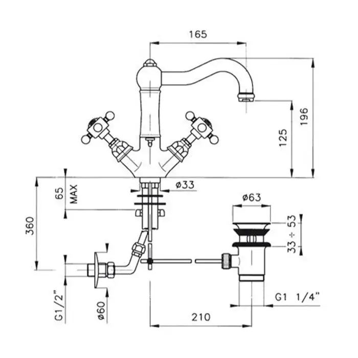 Nicolazzi Half Dome Crystal Смеситель для раковины с авт. сливом на 3 отв, цвет хром 1409CR93
