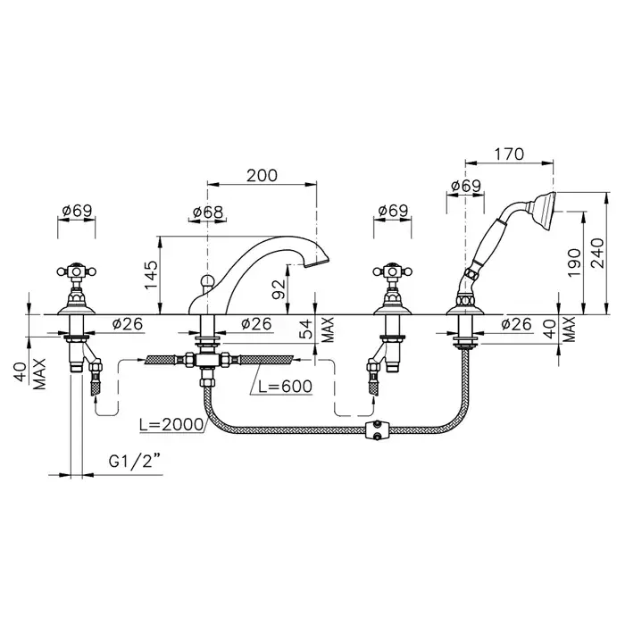 Nicolazzi Half Dome Crystal Смеситель на борт ванны с душем, излив 24,6 см, цвет хром 1449CR93