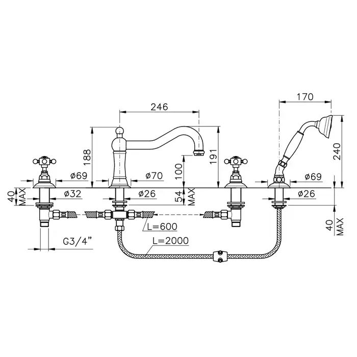 Nicolazzi Half Dome Crystal Смеситель на борт ванны с душем, излив 24,6 см, цвет хром 1449CR93