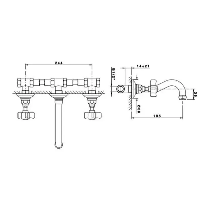 Nicolazzi Half Dome Смеситель настенный для раковины с 2-мя ручками, цвет: хром 1477CR70