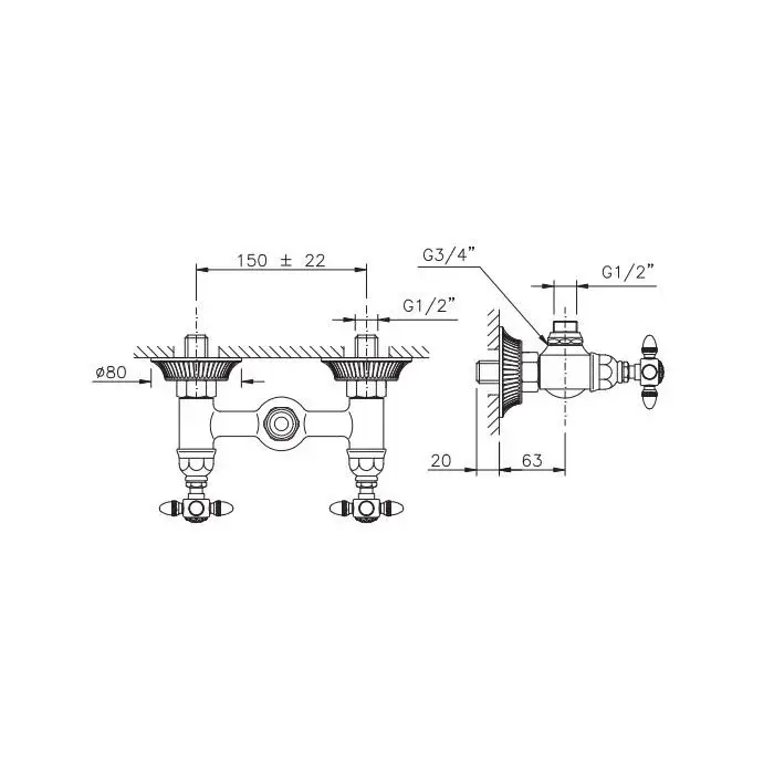Nicolazzi Impero Смеситель для душа с 2мя ручками, вывод сверху 1/2, цвет золото 1225GO36