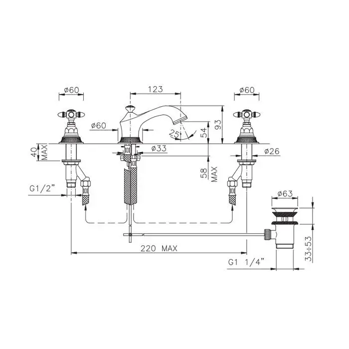 Nicolazzi Impero Смеситель для биде, на 3 отв., с дон. клапаном, излив 13,1 см, цвет: хром 1215CR36
