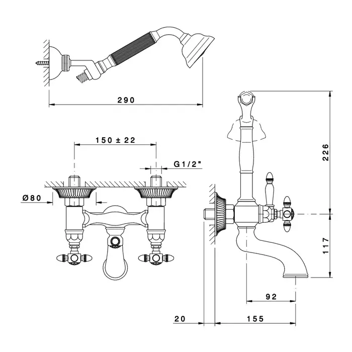 Nicolazzi Impero Смеситель для ванны с душем, на 2 отв., излив 15,5 см, цвет: хром 1201CR36L