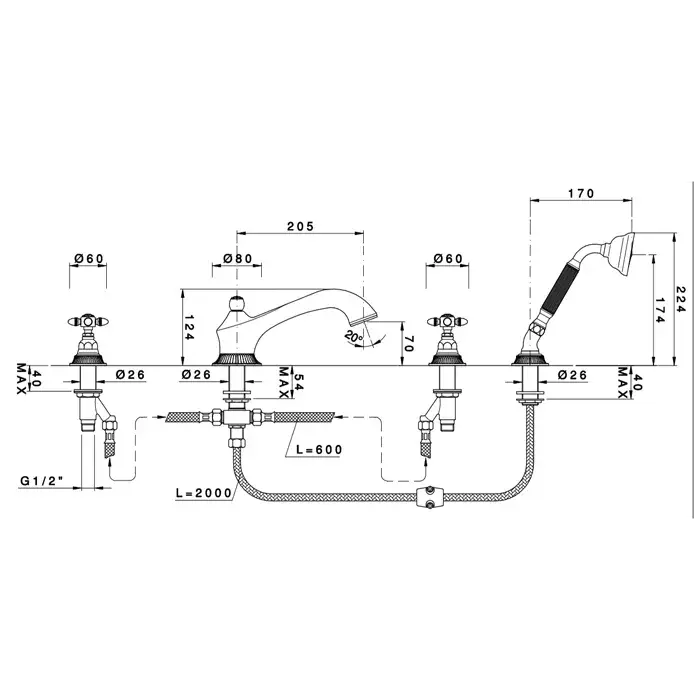 Nicolazzi Impero Смеситель на борт ванны, на 4 отв., излив 20,5 см, ручн. душ, цвет: хром 1204CR36