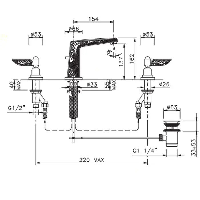 Nicolazzi Liberty Смеситель для раковины, на 3 отверстия, с донным клапаном, цвет: хром 1008CR16