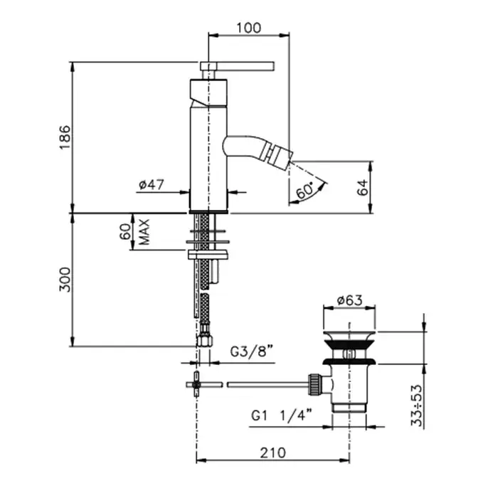 Nicolazzi Mac Kinley 05 Смеситель для биде, на 1 отв., с донным клапаном, цвет: хром 3703CR29M