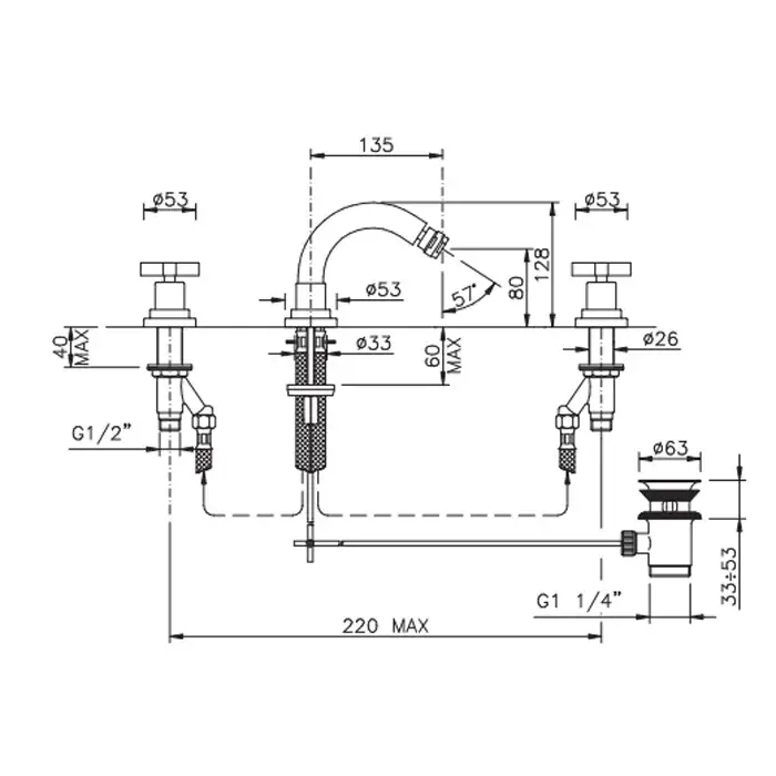 Nicolazzi Monte Croce Смеситель для биде на 3 отверстия, излив 13,5 см, цвет: хром 2215CR27