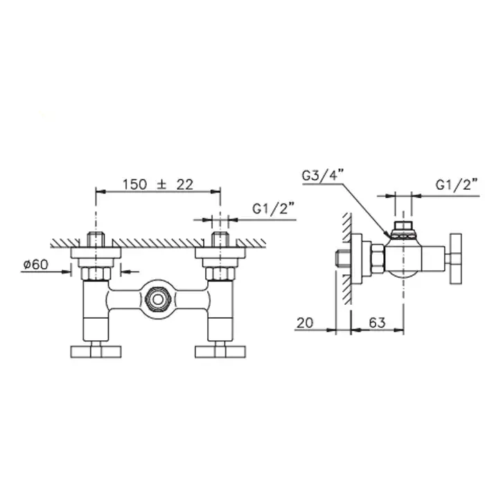 Nicolazzi Monte Croce Смеситель для душа с 2-мя ручками, вывод сверху 1/2, цвет: хром 2225CR27