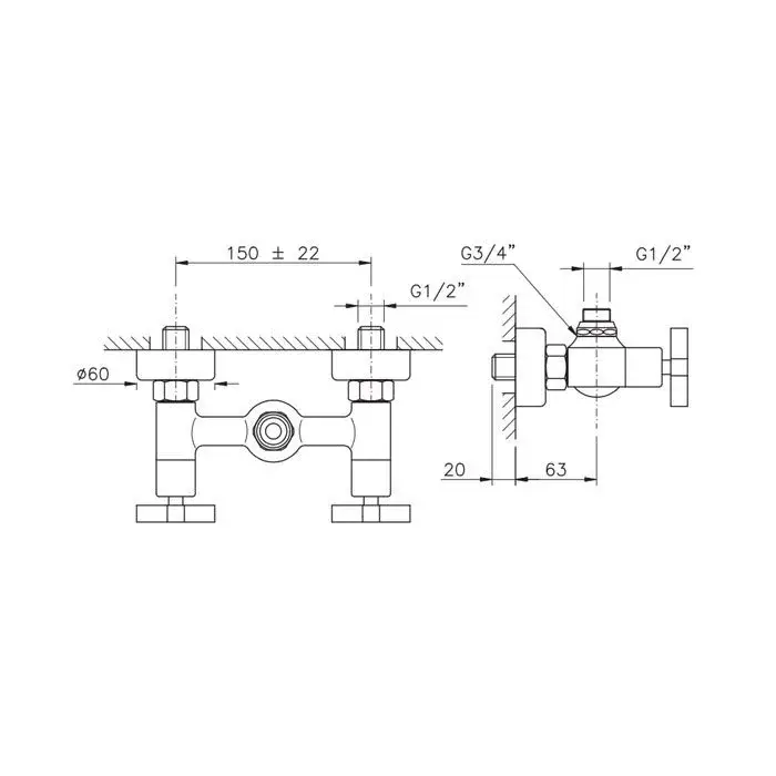 Nicolazzi Monte Croce Смеситель для душа с 2мя ручками, вывод сверху 1/2, цвет золото 2225GO27