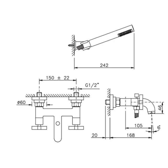 Nicolazzi Monte Croce Смеситель для ванны с 2-мя ручками, цвет: хром 2202CR27