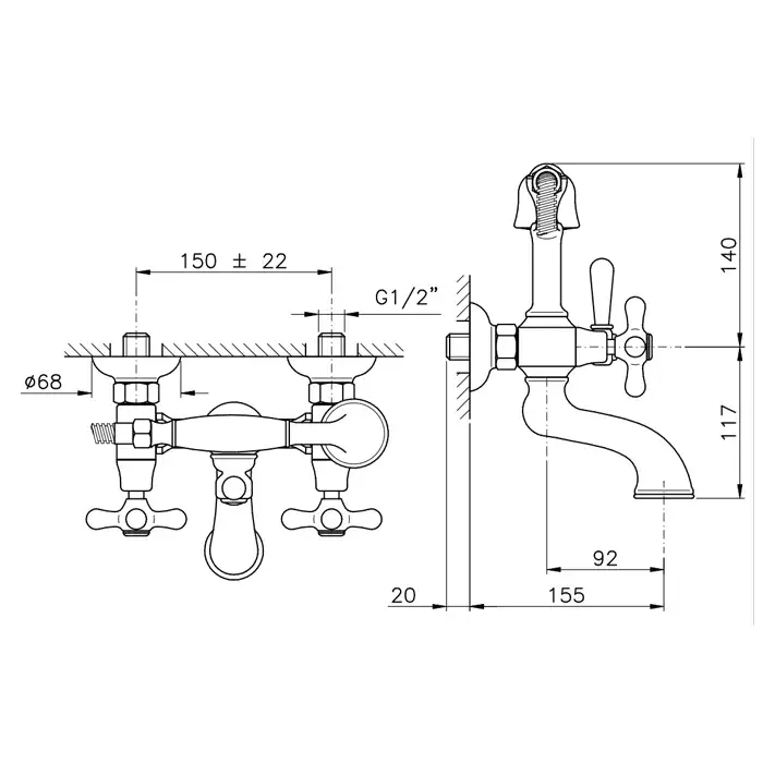 Nicolazzi Nuova Brenta Смеситель для ванны, с 2мя ручками, душ. лейка, цвет: тёмная бронза 2501DB