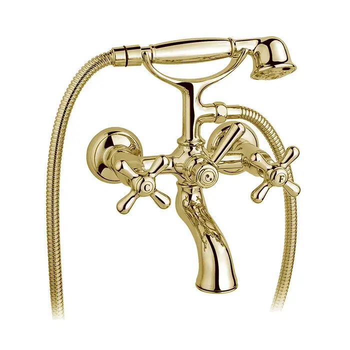 Nicolazzi Nuova Brenta Смес. для ванны, с 2мя ручками, душ. лейка, цвет: античное мат. золото 2501AG