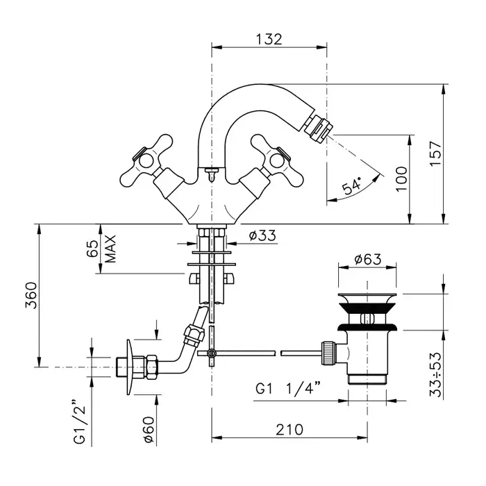 Nicolazzi Nuova Brenta Смеситель для биде с 2мя ручками, пов. излив 13,2 см, цвет бронза 2537BZ