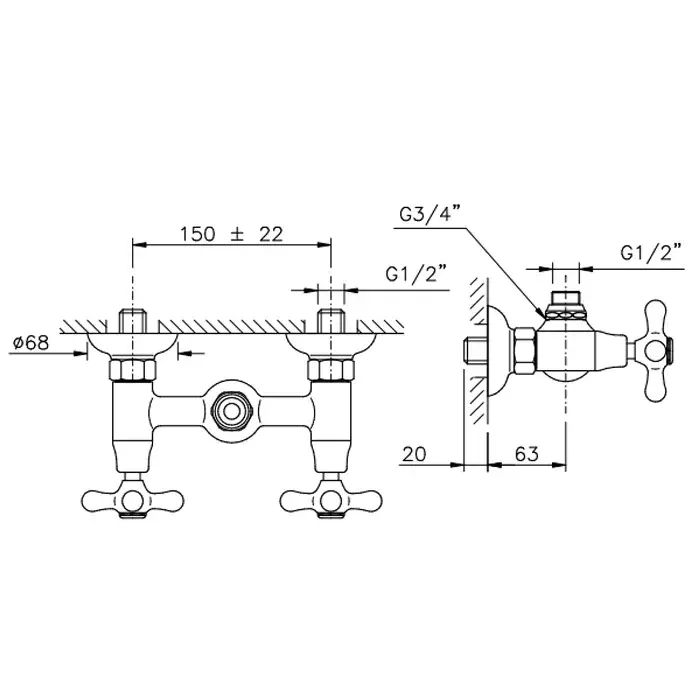 Nicolazzi Nuova Brenta Смеситель для раковины с 2мя ручками, пов. излив 19 см, цвет хром 2538CR