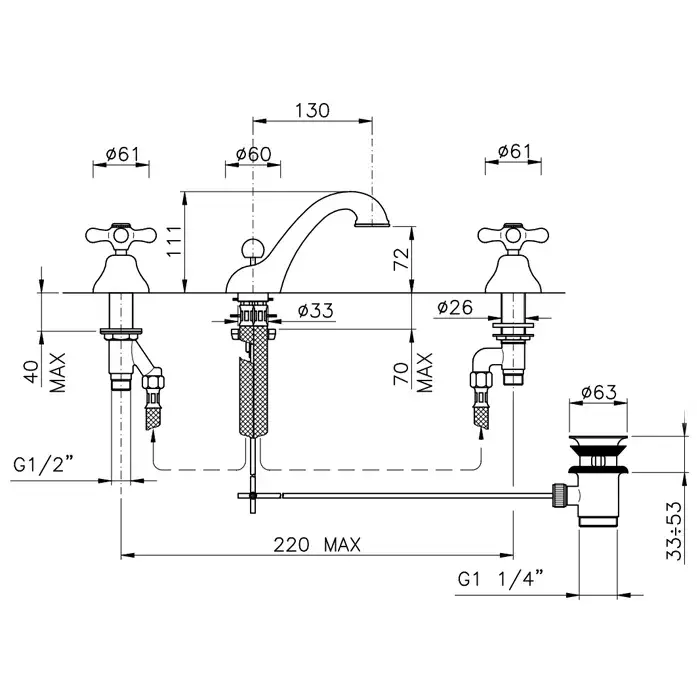 Nicolazzi Nuova Brenta Смеситель для раковины на 3 отв., излив 13 см, цвет хром 2508CR