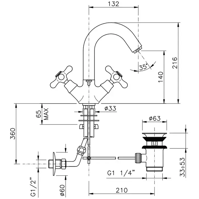 Nicolazzi Nuova Brenta Смеситель для раковины с 2мя ручками, пов. излив 13,2 см, цвет хром 2536CR