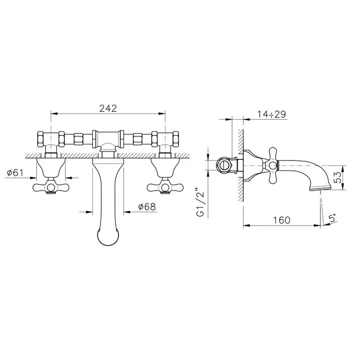 Nicolazzi Nuova Brenta Смеситель для раковины с 2мя ручками, пов. излив 19 см, цвет хром 2538CR