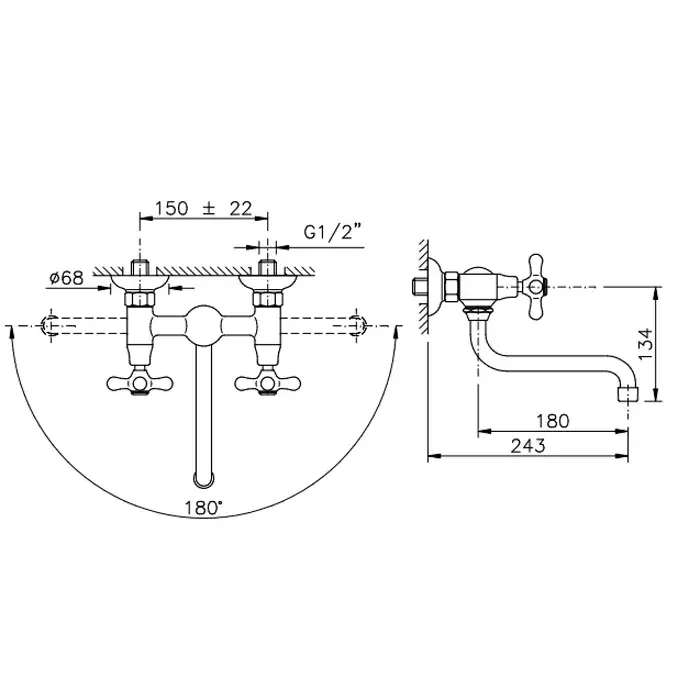 Nicolazzi Nuova Brenta Смеситель для раковины с 2мя ручками, настенный, цвет бронза 2505BZ