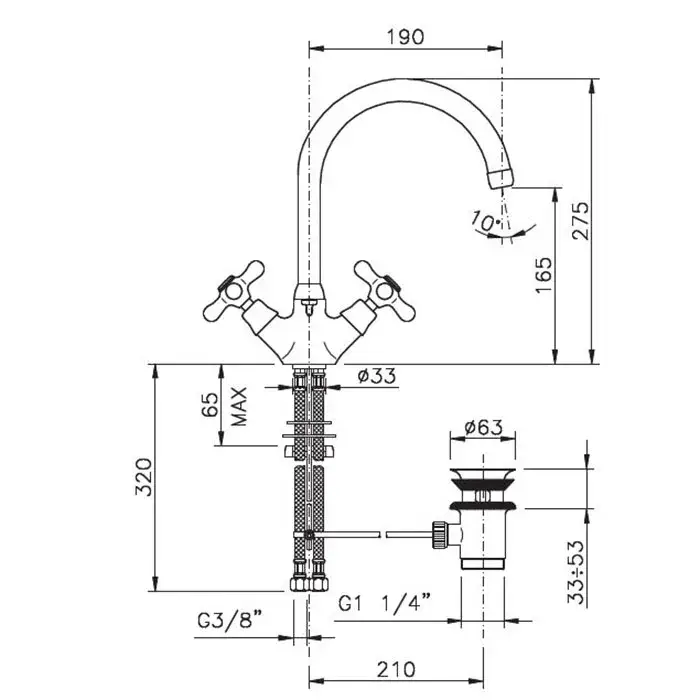 Nicolazzi Nuova Brenta Смеситель для раковины с 2мя ручками, пов. излив 19 см, цвет хром 2538CR