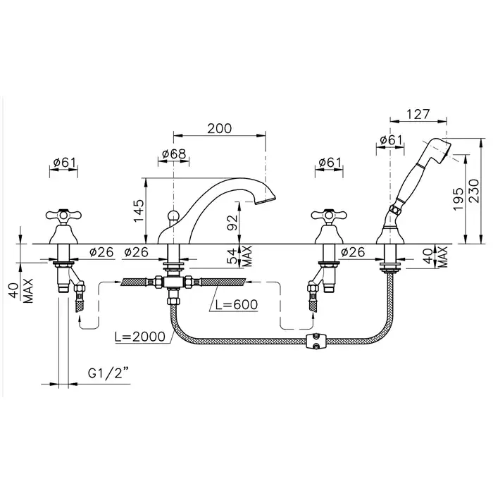 Nicolazzi Nuova Brenta Смеситель для ванны, с 2мя ручками, душ. лейка, цвет: тёмная бронза 2501DB