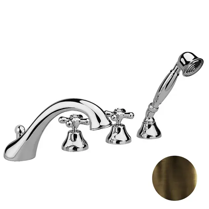 Nicolazzi Nuova Brenta Смес. на борт ванны, душ. лейка, излив 20 см, цвет: натуральная латунь 2504GO