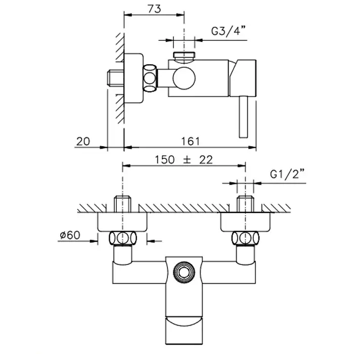 Nicolazzi Olympus Смеситель для душа на 2 отверстия, настенный, вывод снизу 1/2, цвет: хром 3705CR
