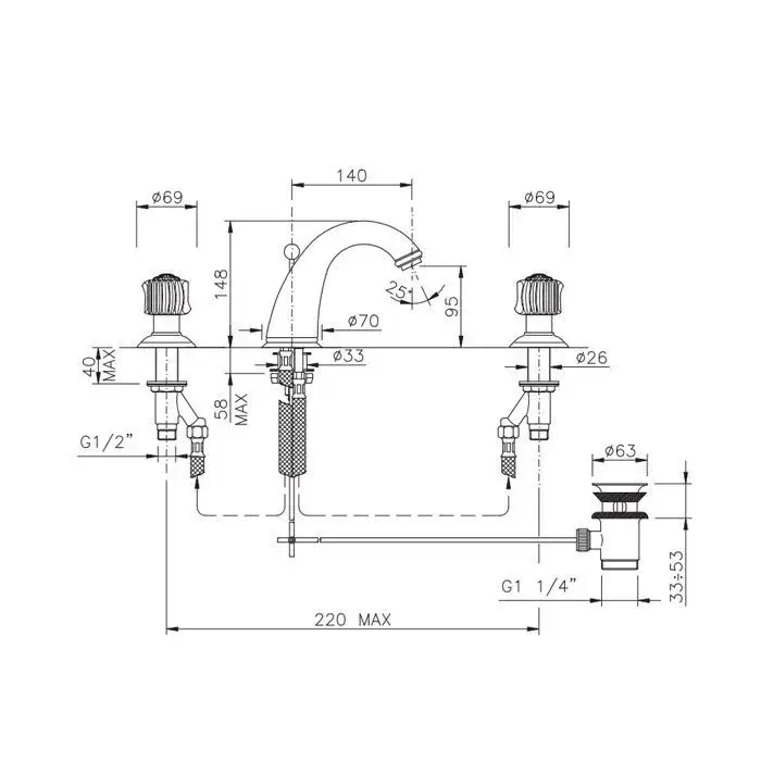Nicolazzi Onice Смеситель для раковины на 3 отверстия, излив 14 см, цвет латунь 2108OL09O