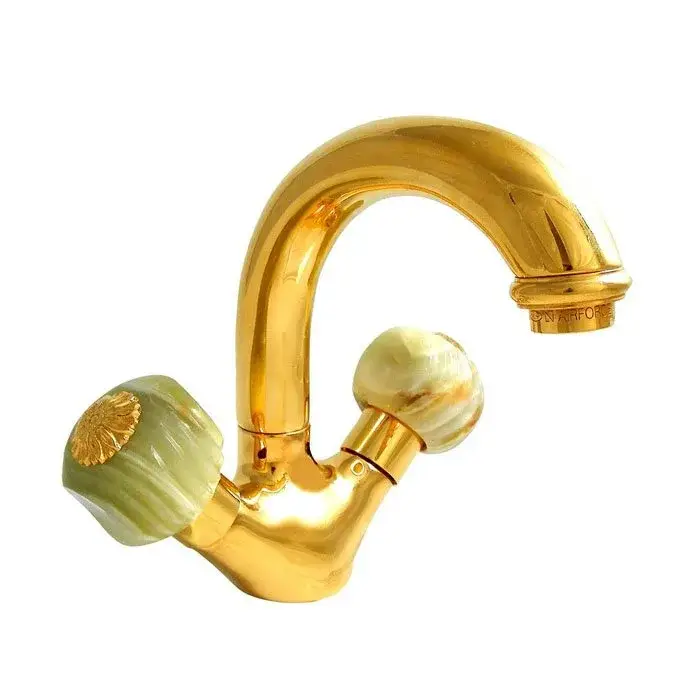 Nicolazzi Onice Смеситель для раковины с 2мя ручками, излив 13,9 см, цвет золото 2132GO09O