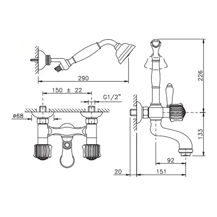 Nicolazzi Onice Смеситель для ванны настенный с душем duplex, цвет хром 2102CR09O