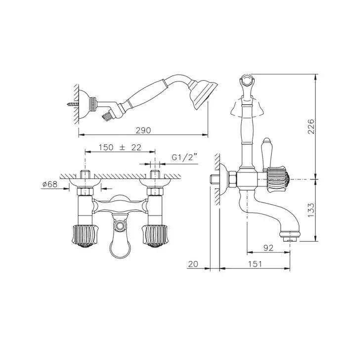 Nicolazzi Onice Смеситель для ванны, с 2-мя ручками, руч. душ, цвет: золото 2102GO09O