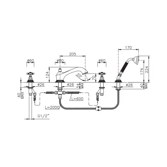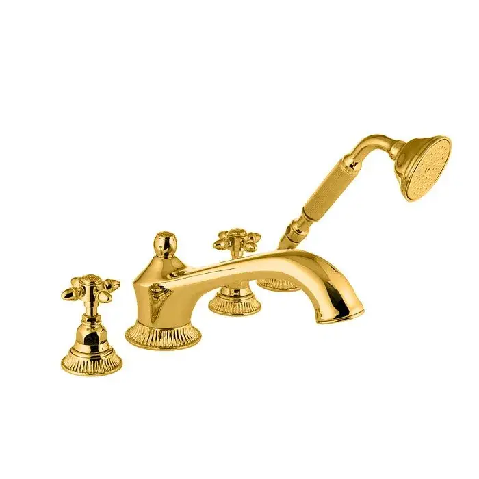 Nicolazzi Onice Смеситель на борт ванны, 4 отв., излив 20,5 см, с ручным душем, цвет золото 1204GO36