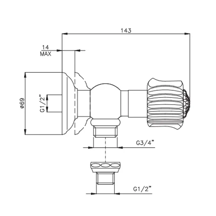 Nicolazzi Onice Запорный вентиль 1/2 вкл. внутр часть, цвет хром 2147CR09O