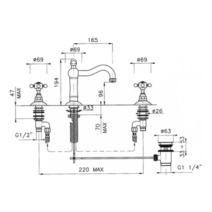 Nicolazzi Petit Mont Blanc Смеситель для раковины на 3 отверстия, цвет бронза 1409BZ78