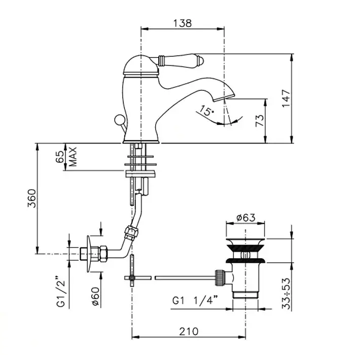 Nicolazzi Petit Mont Blanc Смеситель для раковины однорычажный, цвет: хром 3452CR76C
