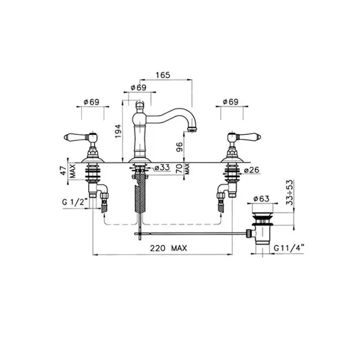 Nicolazzi Petit Mont Blanc Смеситель для раковины с автомат. сливом на 3 отв., цвет: хром 1409CR78