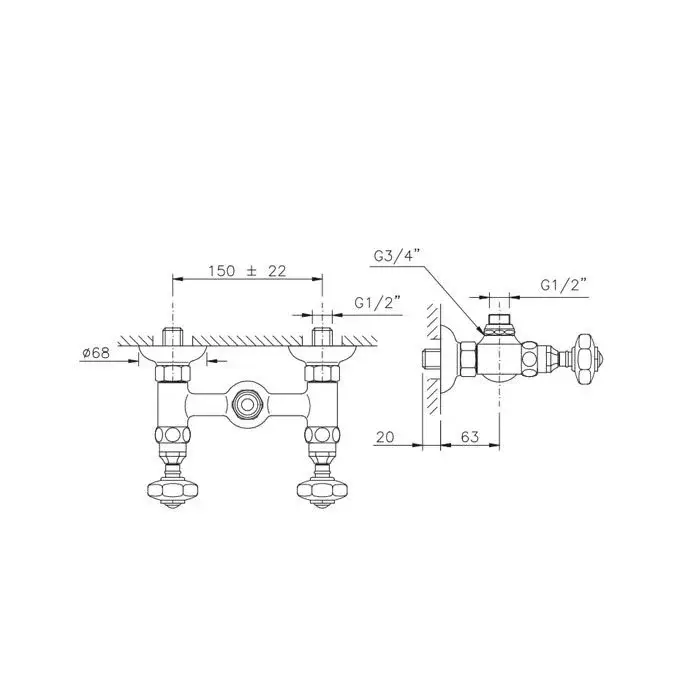 Nicolazzi Teide Chic Смеситель для душа с 2мя ручками, вывод сверху 1/2, цвет хром 1925CR15C