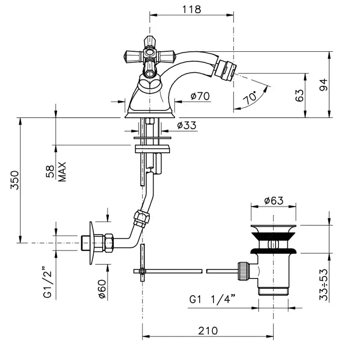 Nicolazzi Teide Four Смеситель для биде с донным клапаном, излив 11,8 см, цвет хром 1934CR45