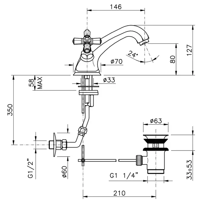 Nicolazzi Teide Foure Смеситель для раковины с донным клапаном, цвет хром 1932CR45