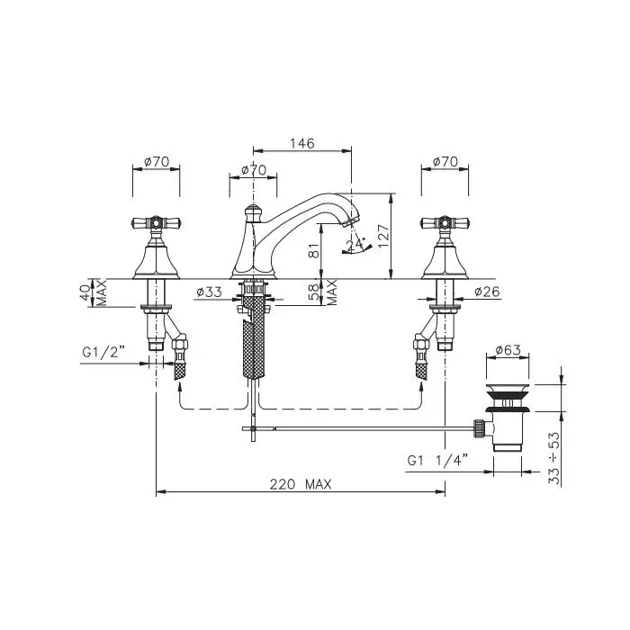 Nicolazzi Teide Смеситель для раковины на 3 отверстия, с донным клапаном, цвет бронза 1908BZ45
