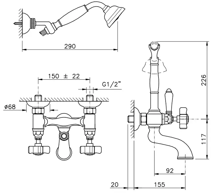 Nicolazzi Tradizionale Смеситель настенный для ванны, цвет: бронза/белый 1402BZ
