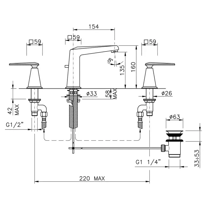 Nicolazzi Vincent Смеситель для раковины на 3 отверстия, излив 15,4 см, цвет хром 1008CR28