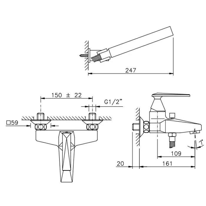 Nicolazzi Vincent Смеситель для ванны на 2 отв., настенный, с душевой лейкой, цвет: хром 3001CR35