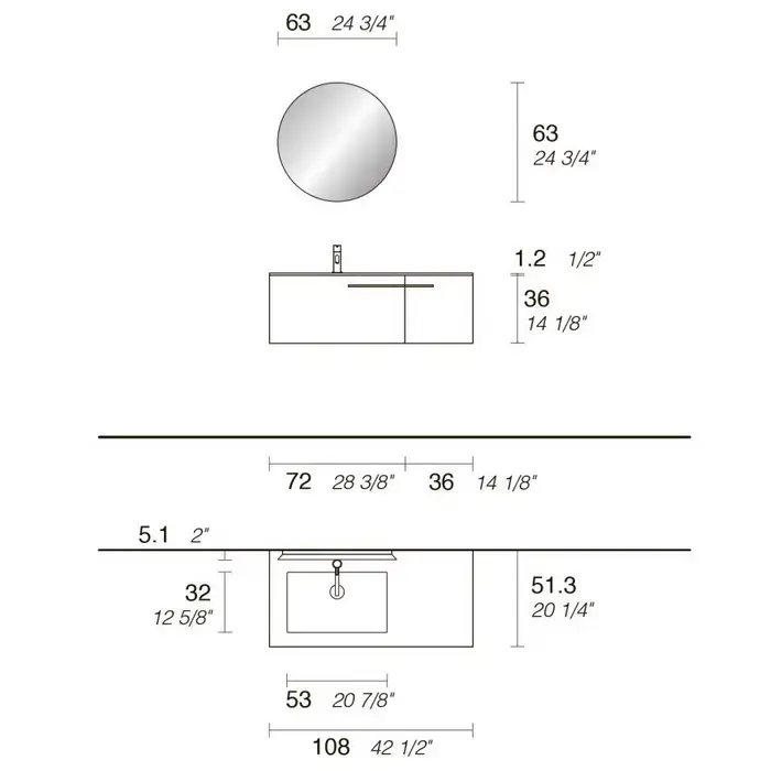 NOORTH milldue edition ONE Комплект мебели 108см, меламин, с интегрированной раковиной LAYER 02 и столешницей из Milltek solid light, зеркалом AIR, белыми матовыми ручками, подвесной, Цвет: venato vaniglia-731