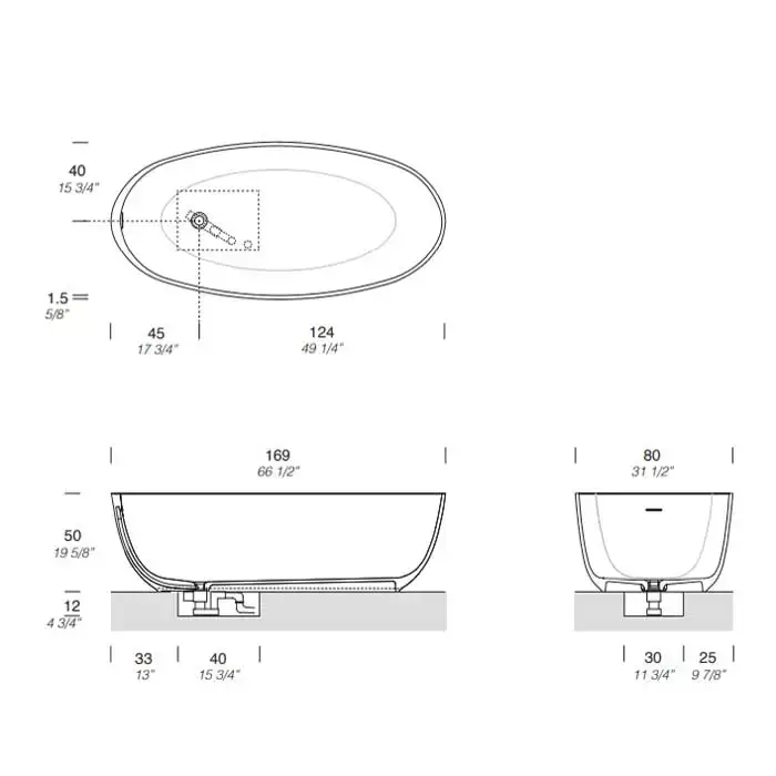 Antonio Lupi Mastello Ванна отдельностоящая 135х75хh87 см, с донным клапаном (хром), сифоном и гибким шлангом, материал: Flumood, цвет: белый