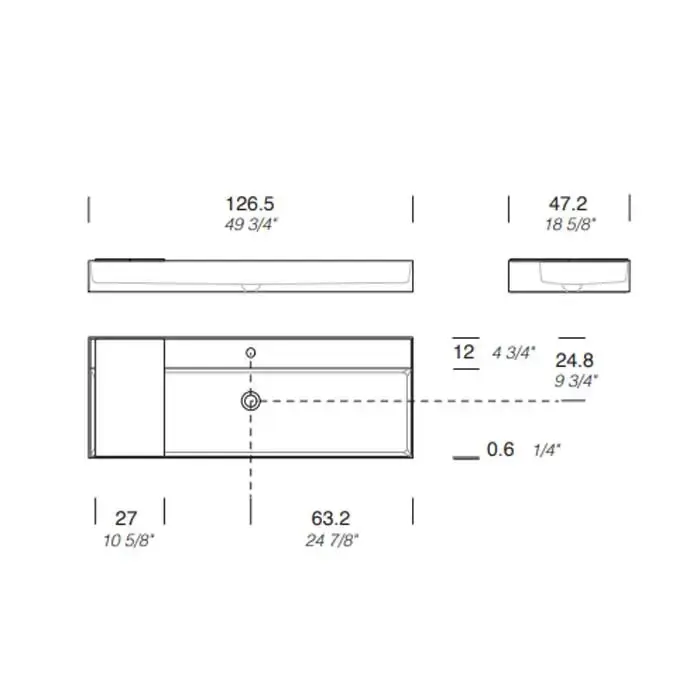 NOORTH milldue edition Раковина 126.5х47.2х12 см, 1 отв., накладная, цвет: белый