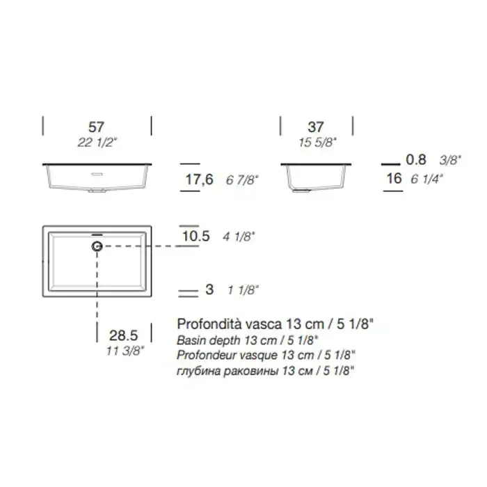 NOORTH milldue edition Раковина 57х37х13 см, без отв., полувстраиваемая, цвет: белый