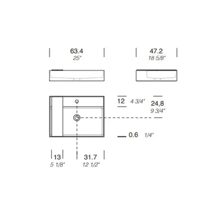 NOORTH milldue edition Раковина 63.4х47.2х12 см, 1 отв., накладная, цвет: белый