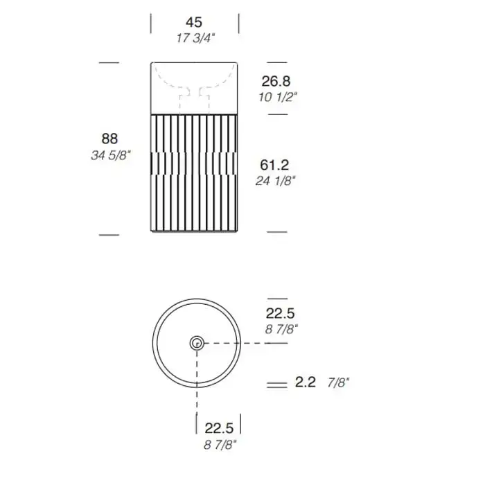 NOORTH milldue edition ROMA III Раковина 45х88 см, без отв., напольная, без перелива, с донным клапаном, цоколь фрезерованный Moka Cream, цвет: Moka Cream/Grafite